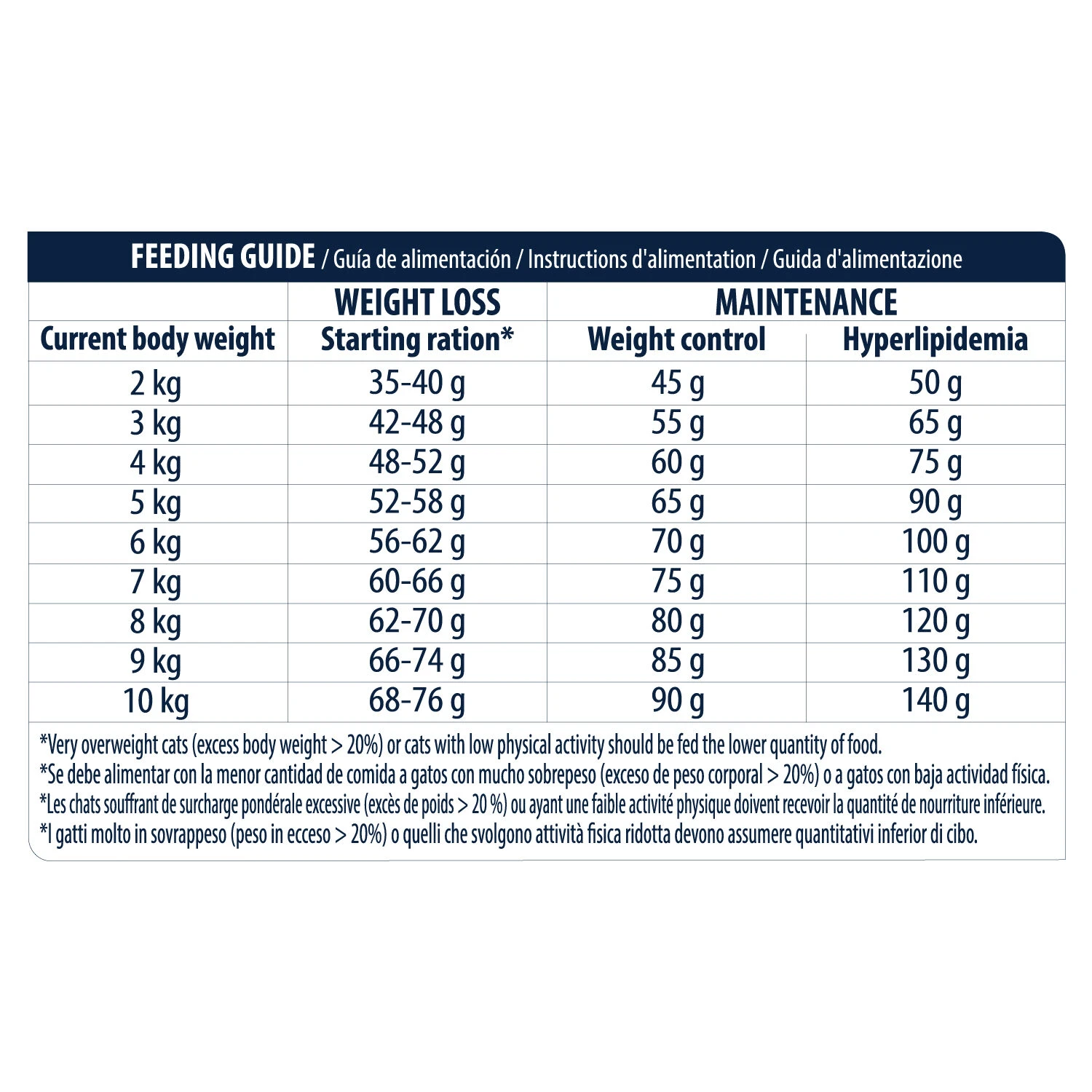 - Overweight adult cats