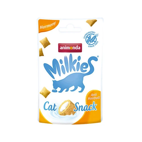 - Animonda Milkies Cat Snack – Harmony: aids in reducing hairballs.
