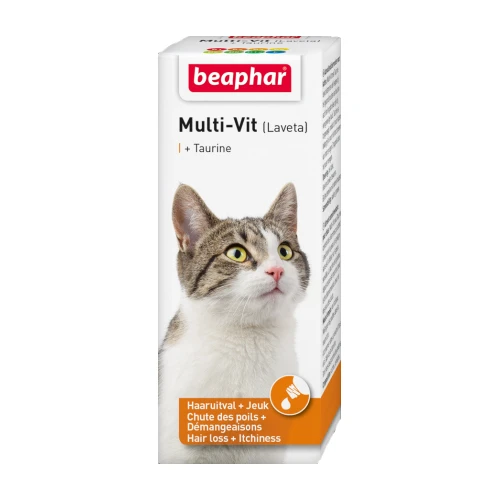 Beaphar Multi-vit with Taurine is a food supplement that protects against hair loss, skin itching and flaking. Beaphar Multi-vit with Taurine ensures fast, complete shedding, resulting in a beautiful, glossy and healthy coat. Taurine promotes general health and has a positive effect on the heart, nervous system and eyes.