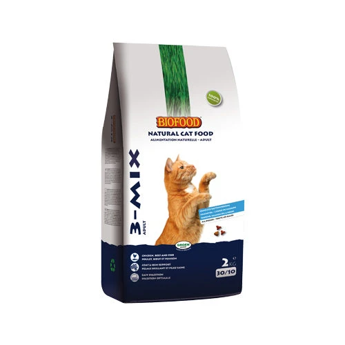 BF®Petfood 3-Mix Cat Food is delicious cat food with fish, beef and chicken. This natural cat food contains important proteins, fats, carbohydrates, vitamins and minerals which contribute to your cat’s overall health. This dry cat food is also enriched with echinacea herbs and taurine. The omega-3 and 6 fatty acids contribute to a beautiful skin and coat.