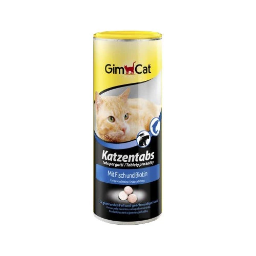 - GimCat Cat Tabs – Fish milk and dairy products, oils and fats, sugar, yeasts, fish and fish derivatives (dried (6%)), derivatives of vegetable origin, lactose derivative with TGOS (1%) and minerals.