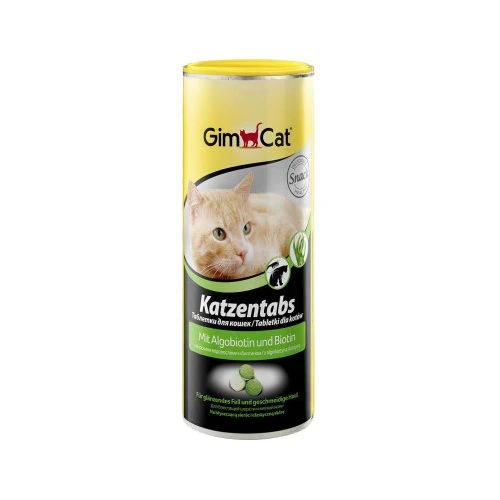 - GimCat Cat Tabs – Algobiotine: milk and dairy products, oils and fats, sugar, yeast, dried algae (5%), derivatives of vegetable origin, lactose derivative with TGOS (1%) and minerals.