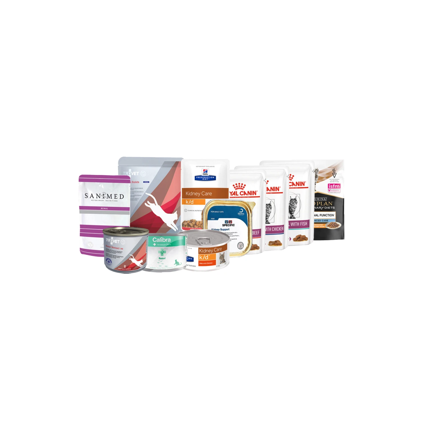 A cat with kidney problems often have poorer appetite and can therefore become very picky in deciding what to eat. Usually these cats accept wet food. It can be quite a hunt for what your cat likes. Fortunately, Vetsend has put together the Taster Pack Kidney Diet. This pack contains 10 different types of wet food with kidney diets of Royal Canin, Hill’s, Specific, TROVET, Sanimed and Calibra in different flavors. With small portion packs, you can introduce your cat to different types of food. This way you will find out what she likes best.