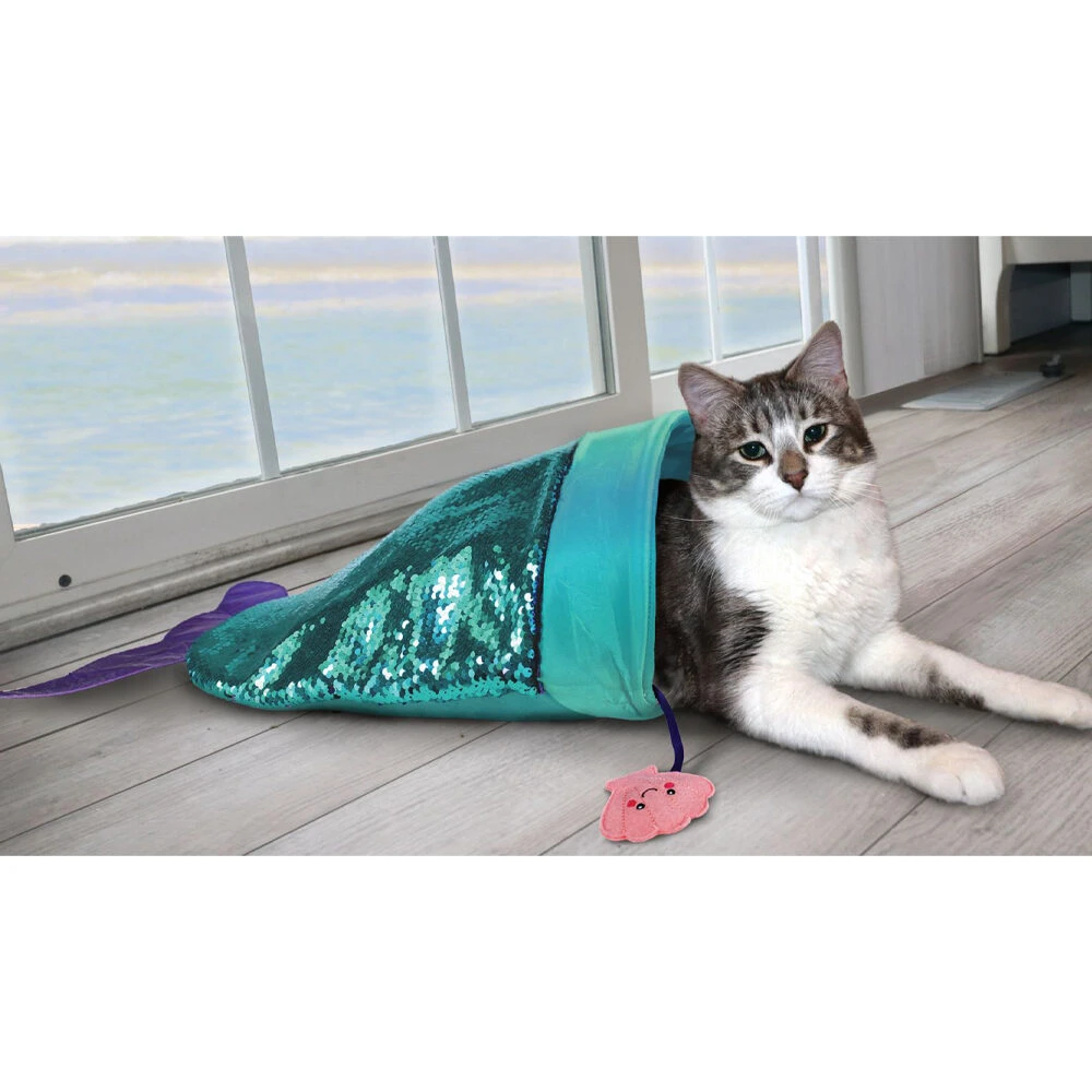 Do you want to spoil your cat with a fun toy? The KONG Play Spaces SeaQuins is a crumple bag in the shape of a mermaid tail that your cat can explore. The inside is filled with Catnip, which your cat will absolutely love. The different materials and sounds that this toy will result in hours of fun!
