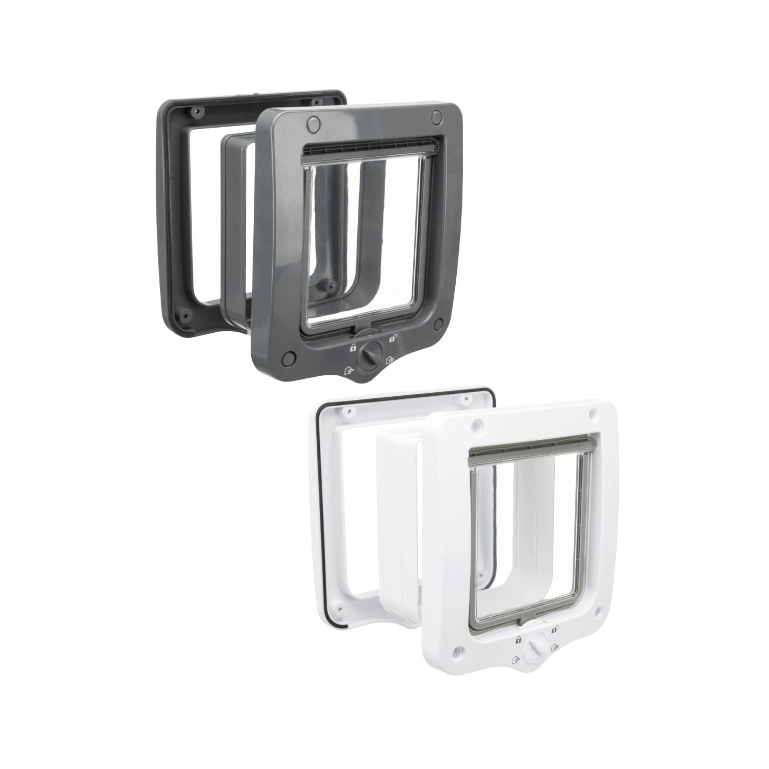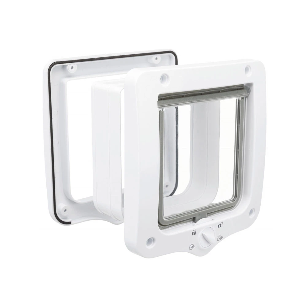 The Trixie 4-way Cat Flap with Tunnel is a practical addition to your home. It fits in walls and thick doors, with a transparent flap and tunnel element allowing your cat to get in and out of the house. The tunnel has an installation depth of at least 20mm. If desired, the tunnel can be extended with extra tunnel elements. The flap itself makes very little noise and can be adjusted in different directions. This is especially useful in the evening or when you’re away from home, because you can easily close the flap.