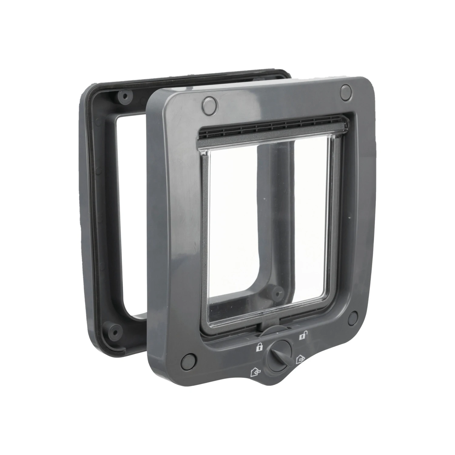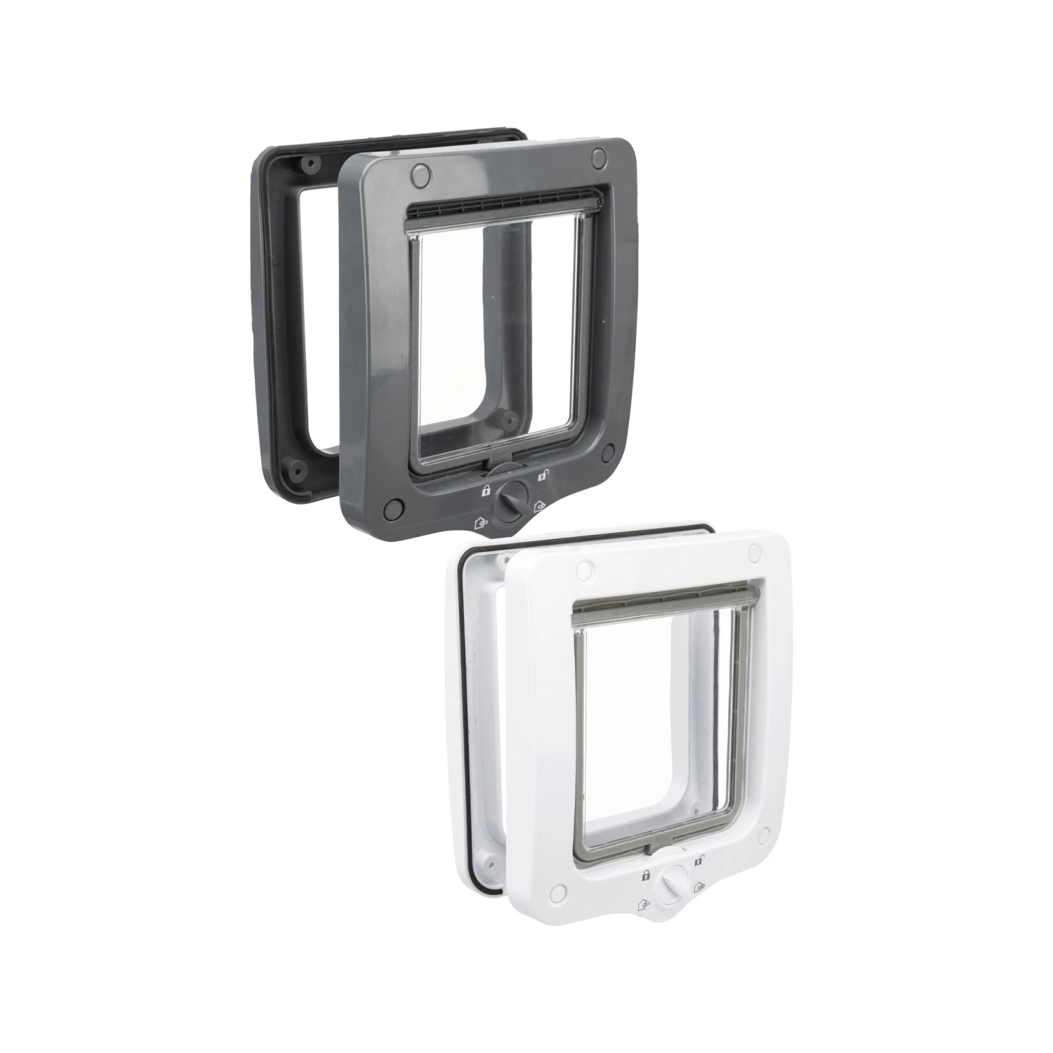 The [curl=431]Trixie[curl] 4-Way Cat Flap allows your cat to easily leave or enter the house. Thanks to the safety lock that can be put in 4 different positions, you can choose to keep the flap open, only opened on the inside or only opened on the outside. You can also fully close it when you aren’t at home or at night.
