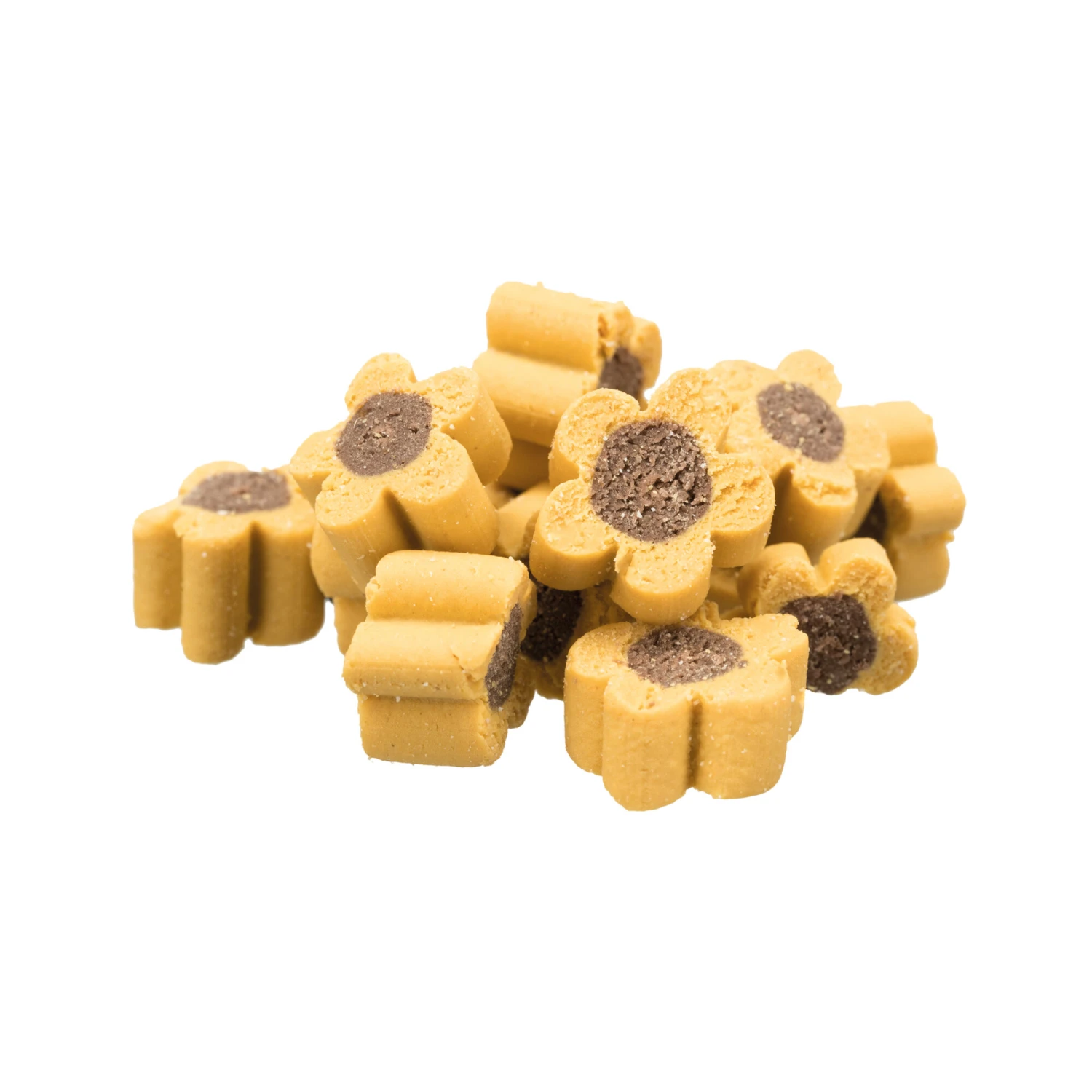 - Chicken Bells: cereals, meat and animal by-products (4 % poultry), vegetable by-products, oils and fats, yeasts, vegetable protein extracts, minerals, propylene glycol.