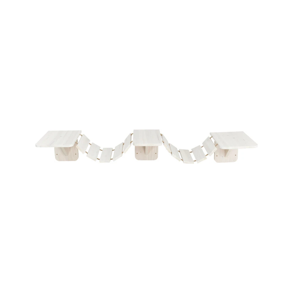 The Trixie Climbing Ladder for Wall Mounting is a fun way to entertain your cat at home. It’s incredibly easy to attach to the wall and can be used as an extension to other scratching posts. The ladder consists of 3 platforms with a ladder-shaped bridge in between. If you want a climbing course, you have to hang the plateaus above each other with a slanted line, as shown in the pictures in the manual. A simple walking route can be created by mounting all three platforms at the same height.