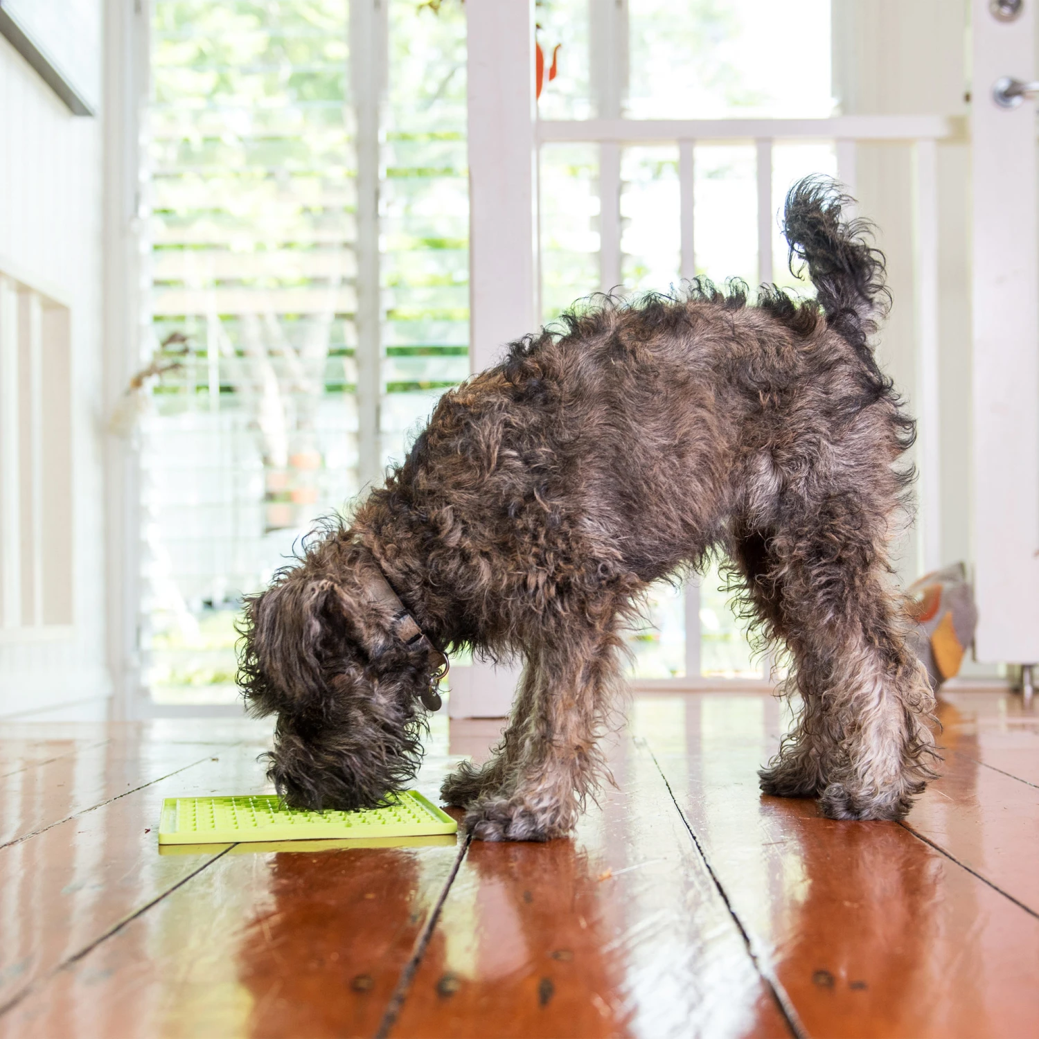 This Licimat feeding mat will provide a real challenge for your dog. Spread your pet’s favourite soft treat on the maze pattern and your pet will have a lot of fun seeking for its treat. The LickiMat also helps to prevent pets from wolfing down their food. It can also function as a great distraction during stressful times, because your dog can concentrate on licking off the treat. In the summer you can prepare a refreshing treat by freezing the mat.