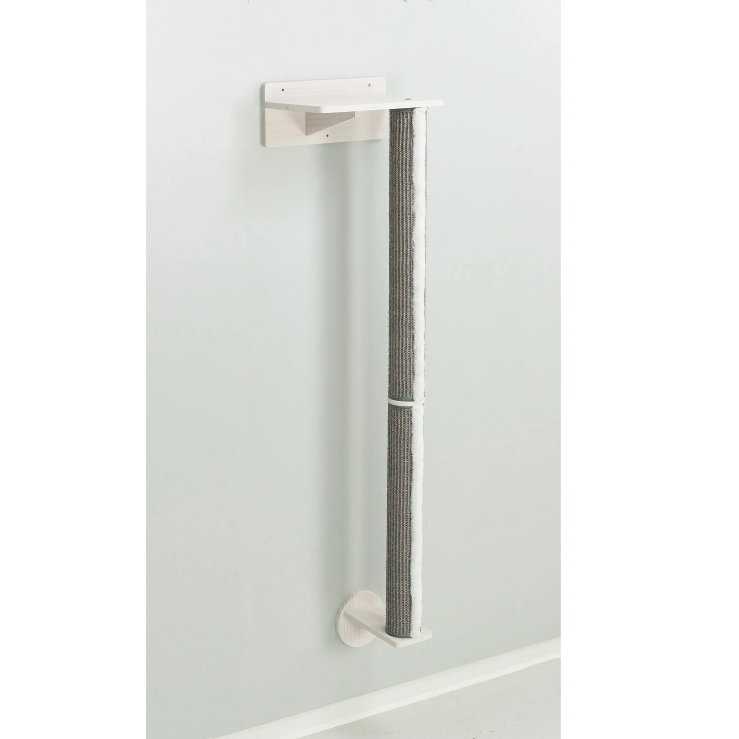 You can make a fun play paradise with the The Trixie Wall Set 1 for Cats. For example, this Wall-Set 1 has a long cylinder with sisal covering where your cat can fullfill all its scratching needs. That’s why it also serves as a scratching post. The set consists of an upper and lower wall bracket, two cylinder pieces with sisal covering and a connecting disc.