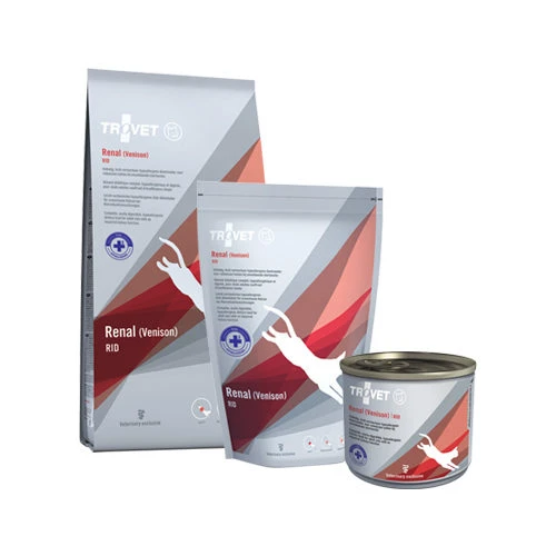 The recommended usage for TROVET Renal RID (Venison) Cat is a maximum of 6 months initially for (chronic) renal insufficiency and 3 to 8 weeks initially for food allergies and intolerance. If prolonged usage is prescribed, TROVET Renal RID (Venison) Cat can be given as a complete diet food for an indefinite period of time.